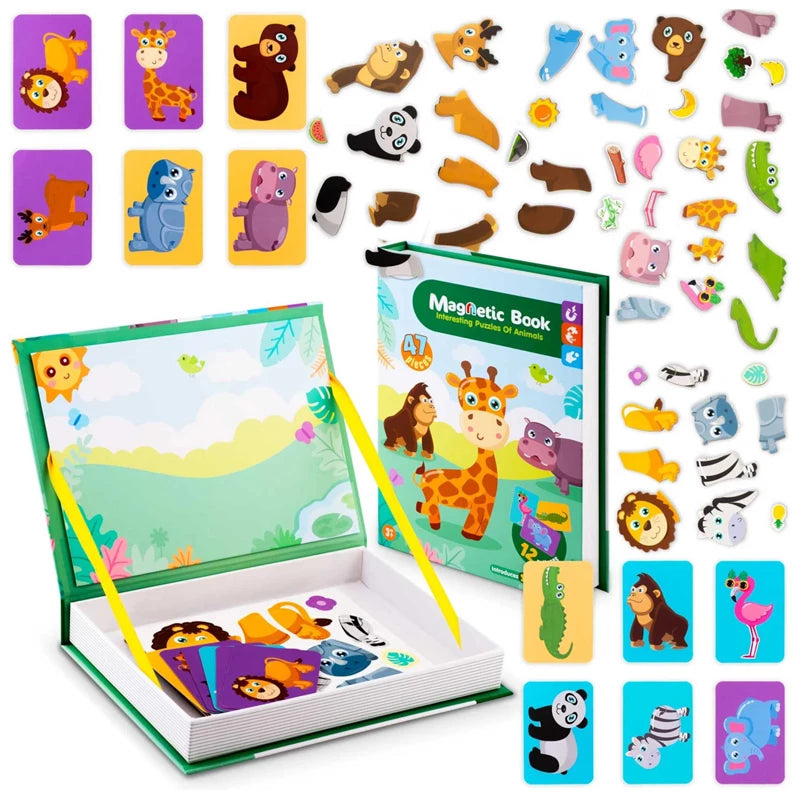 Magnetic Puzzle Book Safari Animals:Unleash your child’s imagination with the Magnetic Puzzle Book Safari Animals, a fun and educational toy designed to develop creativity and fine motor skills. Children can arrange colorful magnetic animals on a scenic board to create unique and engaging wildlife scenes. This toy encourages storytelling, environmental awareness, and imaginative play while keeping kids entertained for hours. Perfect for solo or family play.